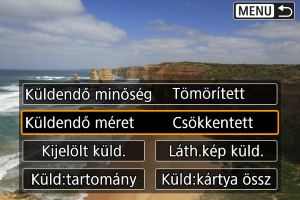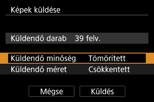 - Több kép küldése esetén küldés előtt igény szerint a megerősítést kérő képernyőn is módosíthatja a(z) [Küldendő méret] értéket.