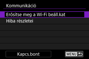- A(z) Wi-Fi-kapcsolat bontásához válassza ki a(z) [Kapcs.bont] lehetőséget a(z) [