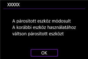 - Egy üzenet jelenik meg, ha a videókamera már párosítva van egy másik eszközzel. Válassza a(z) [OK] lehetőséget az aktuális Bluetooth-kapcsolat bontásához.