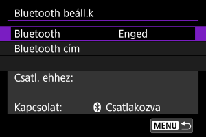 Itt tekintheti meg a videókamera Bluetooth-címét.
