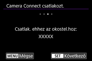 - Ha nincs telepítve a Camera Connect, olvassa be az okostelefonnal a képernyőn megjelenő QR-kódot, nyissa meg a Google Play vagy az App Store áruházat a Camera Connect letöltéséhez, majd nyomja meg a(z)