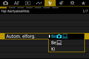- Azok a képek, amelyek készítésekor az automatikus elforgatás [Ki] értékre volt állítva, még akkor sem fordulnak el automatikusan, ha később lejátszáskor [Be] értékre állítja az automatikus elforgatást.