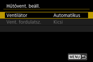 - Magas hőmérsékleten és más felvételi körülmények között előfordulhat, hogy a hűtőventilátor még akkor sem áll le, ha Ön a(z) [Automatikus] beállítást választotta.