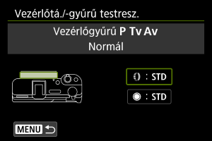 : Vezérlőtá./-gyűrű testresz.] beállításai a(z) [