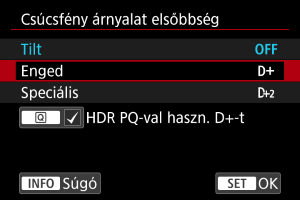 : Csúcsfény árnyalat elsőbbség] beállítást a készülék [Enged] lehetőségre állítja, és nem módosítható, ha a(z) [