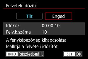 - A felvételi időzítőt a(z) [Tilt] lehetőség kiválasztásával, illetve a tápkapcsoló