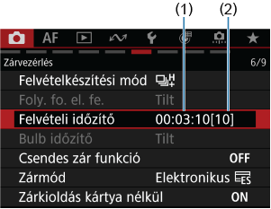 A felvételi időzítő beállítása megjelenik a menüképernyőn.
