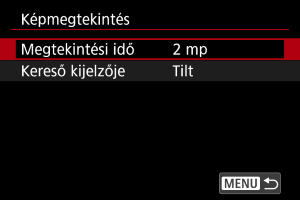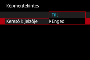 - A(z) [Kereső kijelzője] beállításokat a készülék csak akkor használja, ha a(z) [Képmegtekintés] lehetőség nem a(z) [Ki] értékre van állítva.