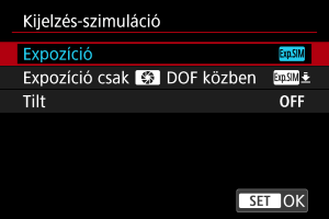 A kijelzőszimuláció használatakor a kép megjelenített fényereje és mélységélessége jobban megközelíti a felvételek tényleges fényerejét (expozícióját).