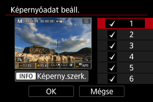 tárcsa elforgatásával válassza ki, hogy milyen információs képernyők jelenjenek meg a fényképezőgép kijelzőjén.
