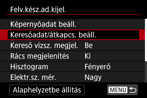 Testreszabhatja, hogy felvételkészítéskor milyen adatok és képernyők jelenjenek meg a képernyőn vagy a keresőben.