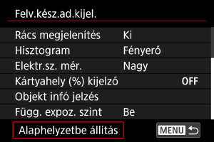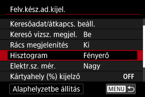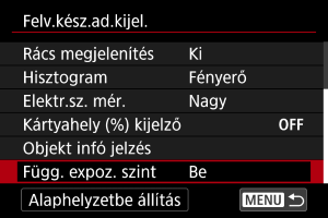 - Ha nem szeretné megjeleníteni az expozíciószint-jelzőt, állítsa a beállítást [Ki] értékre.
