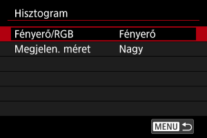 Kiválaszthatja a hisztogram tartalmát és megjelenítési méretét.
