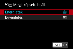 Ezzel az opcióval beállíthatja állóképek rögzítésekor a felvételi képernyő megjelenítési képfrekvenciáját. Kiválaszthatja, hogy energiatakarékos módot vagy nagy képfrekvenciát szeretne-e használni a megjelenítéshez.