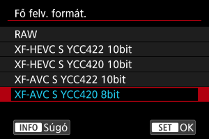 A(z) [: Fő felv. formát.] beállítások a(z)
