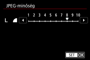 - Állítsa be az állóképek rögzítése során alkalmazandó képminőséget (1–10). A választáshoz forgassa el a(z)