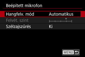 Ez a beállítás akkor érhető el, ha a(z) [ Hangfelv. mód] beállítás [Kézi] értékre van állítva.