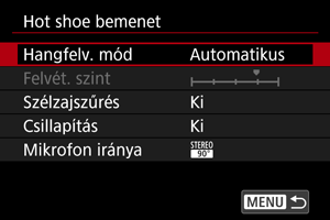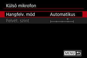 A külső mikrofon BEMENETI csatlakozót használó külső mikrofonok beállításainak konfigurálására szolgál.