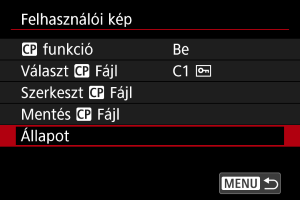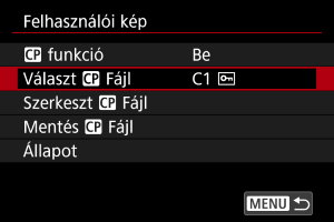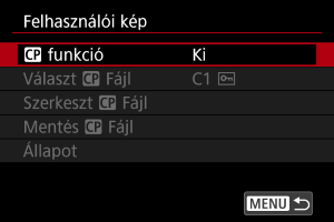 Az egyedi képfájlokra vonatkozó beállításokat a(z) [Felhasználói kép] menüben tekintheti át.