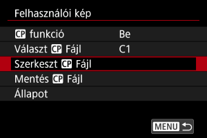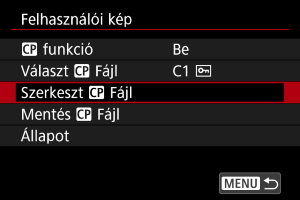 ]) egyedi képfájlok szerkesztéséhez válassza ki a(z) [Védelem leáll] lehetőséget a(z) [Védelem] elemnél, és engedélyezze a szerkesztést.