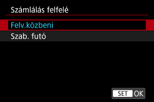 - A(z) [Videó felv.szám.] beállítástól függetlenül a készülék mindig rögzíti az időkódokat a videofájlokhoz (kivéve a(z) [Szab. futó] beállítással készített nagy képsebességű videók esetén).