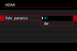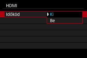Az időkódot a készülék hozzáadja a HDMI-videokimenetre kikerülő videókhoz. A(z) [Be] lehetőség beállításakor megjelenik a(z) [Felv. parancs] elem.