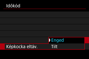 (29,97 kép/mp), akkor az időkód képkocka-számlálója miatt eltérés lesz a tényleges idő és az időkód között. Beállíthatja, hogy automatikus kompenzálni kívánja-e ezt az eltérést.