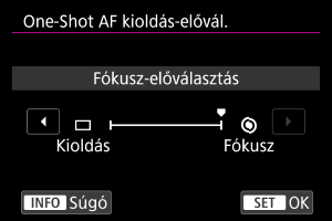 Meghatározhatja, hogy a fókusz vagy a zárkioldás időzítése kapjon elsőbbséget a One-Shot AF esetén (kivéve érintéses kioldással való felvételkészítés esetén).