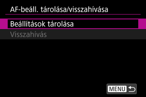 AF-beállítások tárolása/előhívása