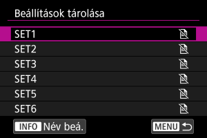 Válassza ki a(z) [Beállítások tárolása] lehetőséget.