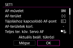 Válassza ki a tárolni kívánt AF-beállításokat.