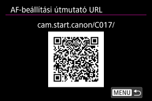 A QR-kód megjelenítéséhez válassza ki a(z) [: AF-beállítási útmutató URL] lehetőséget (). Az AF-beállítási útmutató eléréséhez olvassa be okostelefonjával a QR-kódot.