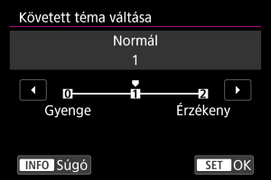 Ezzel a beállítással a(z) [Normál] beállításhoz képest előbb vált a követett témák között.