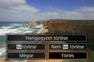 - Hangjegyzetet tartalmazó kép esetén képlejátszás közben is törölheti a hangjegyzetet a(z) [Hangjegyzet törlése] paranccsal.