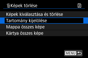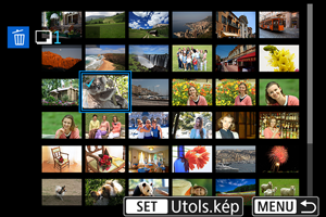 Miközben a képeket nézegeti az indexképes megjelenítésben, egyszerre kijelölheti egy tartomány első és utolsó képét törlésre.