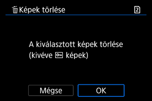 Egyenként kiválaszthatja és törölheti a felesleges képeket, illetve egyetlen lépésben is törölheti az összeset. A védett képek () nem törlődnek.