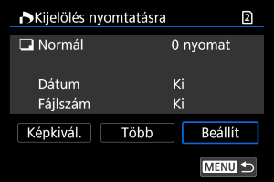 A(z) gomb megnyomásával mentse a nyomtatásra való kijelölést a kártyára.