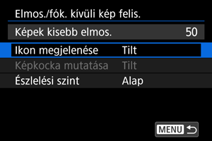 ] (kis mértékű homályosság/életlenség) ikon jelenik meg azoknál a képeknél, amelyek a(z) [Alap] beállításhoz képest kevésbé tiszták és élesek, kivéve a nagyon homályos és életlen képeket.