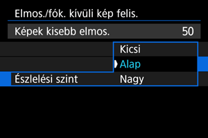 - A(z) [Kép megjel. kisebb elmosódással] lehetőség beállításához nyomja meg vízszintes irányban a(z)