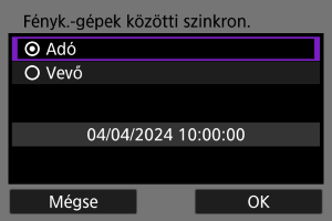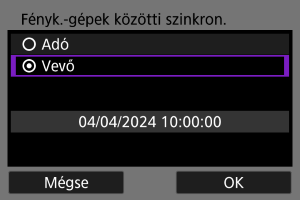 Az adó és a vevő fényképezőgépek idejének szinkronizálásához kövesse az alábbi lépéseket.