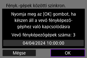 Az adó fényképezőgép ideje legfeljebb 10 vevő fényképezőgépen állítható be. Vegye figyelembe, hogy még a szinkronizálás után is ±0,05 másodperces hibahatárral lehet számolni az adó fényképezőgép és a vevő fényképezőgépek ideje között.