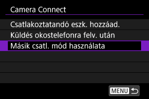 Ha a(z) [Camera Connect] lehetőséget választotta, válassza ki a(z) [Másik csatl. mód használata] opciót a(z) [Camera Connect] képernyőn.