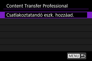 Ha a(z) [Content Transfer Professional] lehetőséget választotta, válassza ki a(z) [Csatlakoztatandó eszk. hozzáad.] opciót a(z) [Content Transfer Professional] képernyőn.