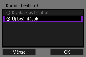 - Ha a fényképezőgépen már vannak tárolt beállítások, a(z) [Kiválasztás listából] opció kiválasztásával alkalmazhatja a tárolt beállításokat.