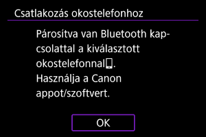 - Egy üzenet jelenik meg, ha a fényképezőgép már párosítva van egy másik eszközzel. Válassza az [OK] lehetőséget az aktuális Bluetooth-kapcsolat bontásához.