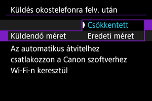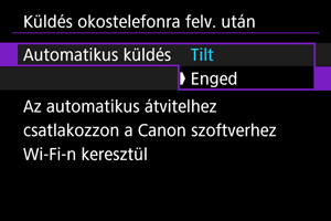 Felvételeit automatikusan is elküldheti okostelefonjára. A lépések végrehajtása előtt győződjön meg róla, hogy a fényképezőgép és az okostelefon csatlakoztatva van-e Wi-Fi-hálózaton keresztül.