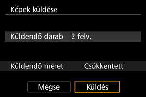- Több kép küldése esetén küldés előtt igény szerint a megerősítést kérő képernyőn is módosíthatja a(z) [Küldendő méret] értéket.