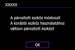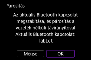 - Egy üzenet jelenik meg, ha a fényképezőgép már párosítva van egy másik eszközzel. Válassza az [OK] lehetőséget az aktuális Bluetooth-kapcsolat bontásához.