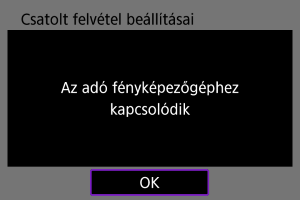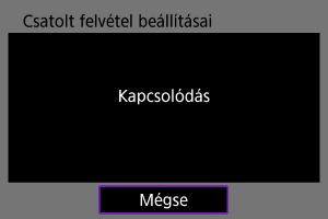 - Ha egy vevő fényképezőgépet nem szeretne tovább használni az összekapcsolt felvételkészítés során, akkor állítsa a vevő fényképezőgépen a(z) [Kapcsolat beállításai] [Csat.felv.] opcióját a(z) [Kapcs.bont] lehetőségre.