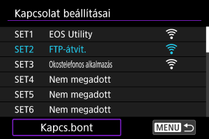 Kapcsolat bontása a(z) [Kapcsolat beállításai] képernyőről